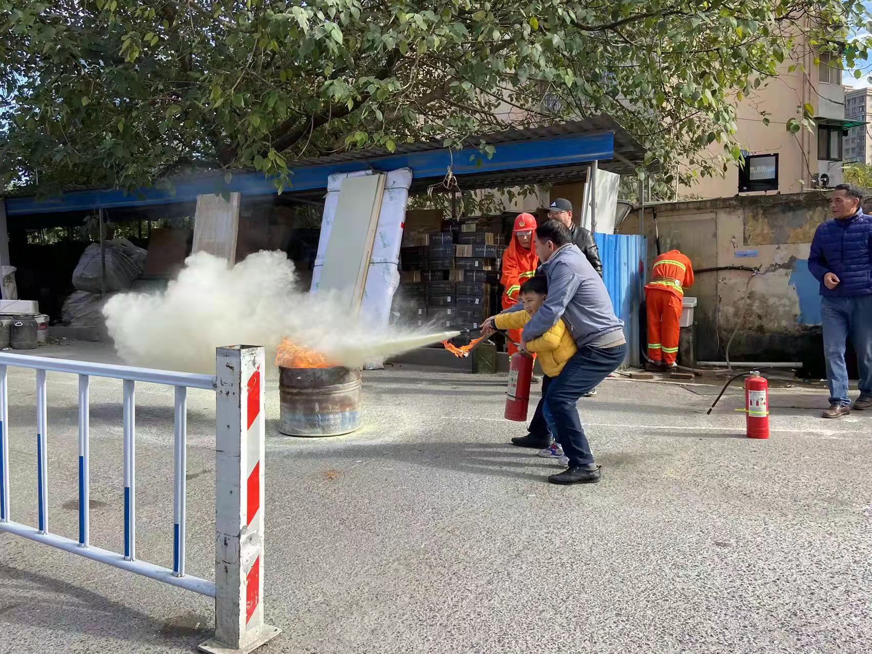 首先,商業(yè)公司安管員向大家講解建筑防火常識、火場逃生自救、人員疏散逃生等知識,并現(xiàn)場演示滅火器的使用方法。