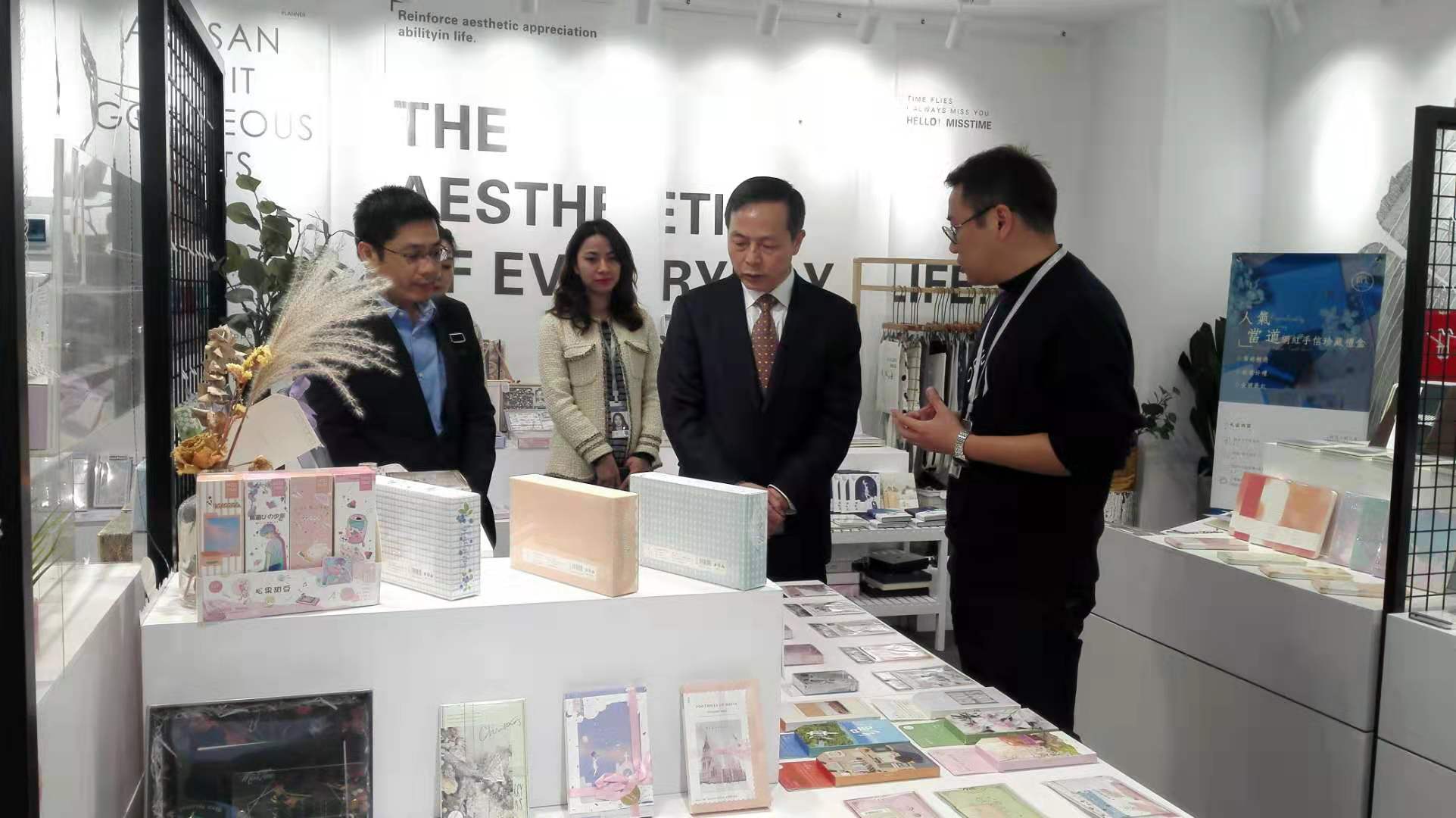 虞岳明一行先后考察了拾光藝創文創產品展示區、文創內容輸出演示區和產品組、品牌組、插畫組等員工工作區,并與拾光藝創核心團隊進行座談。在聽取相關情況匯報后,虞岳明對拾光藝創工作給予充分肯定。一是拾光藝創團隊年輕富有活力,協作精神好,危機意識強。二是善于運用頭腦風暴,注重產品創意設計,注重提供增值服務,業務發展勢頭好。三是年輕黨員多,企業文化很有特色。他指出,拾光藝創發展實踐證明,集團公司大力培育工美文化主業,推進文化與旅游、創意、數字經濟深度融合發展的路子是正確的。