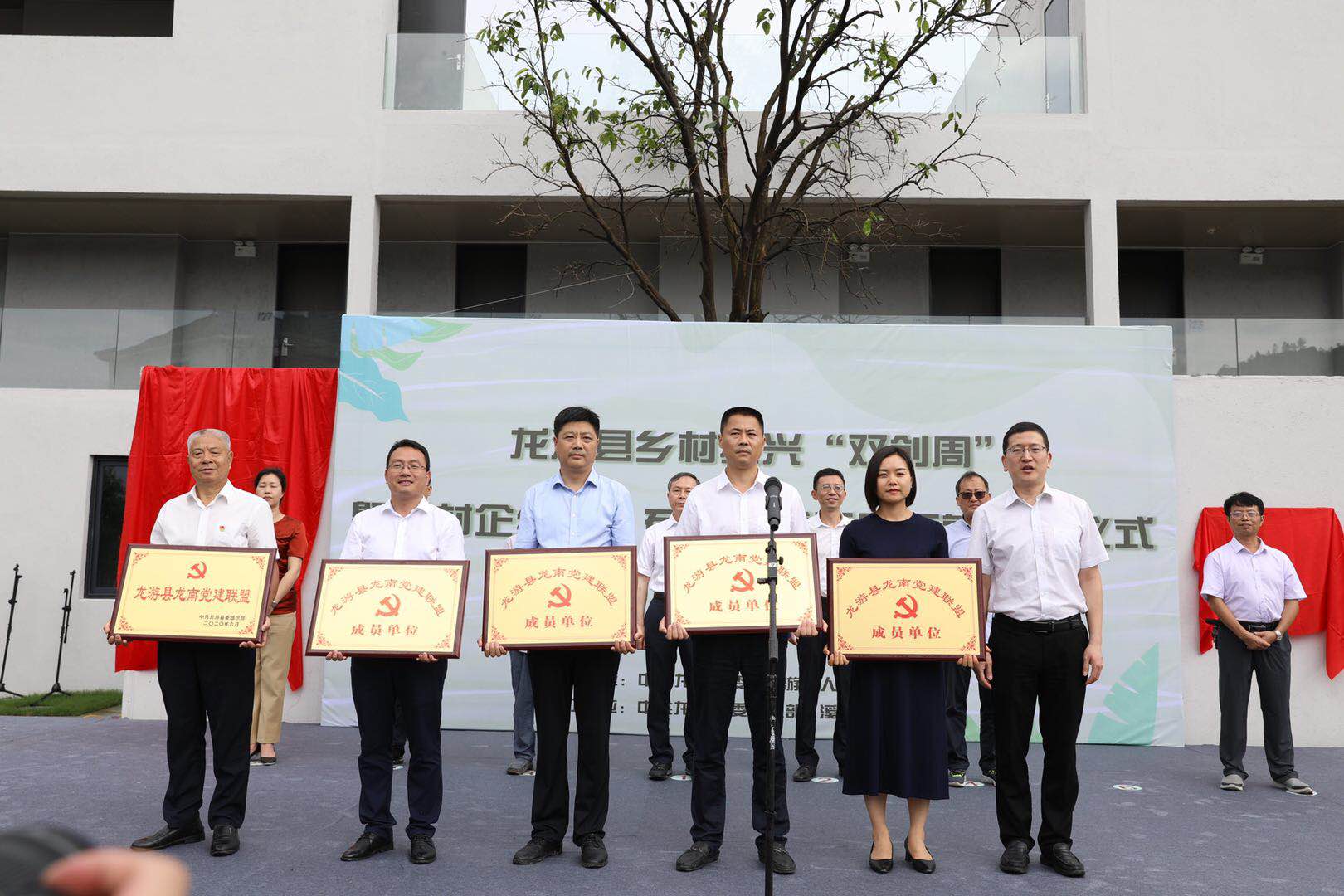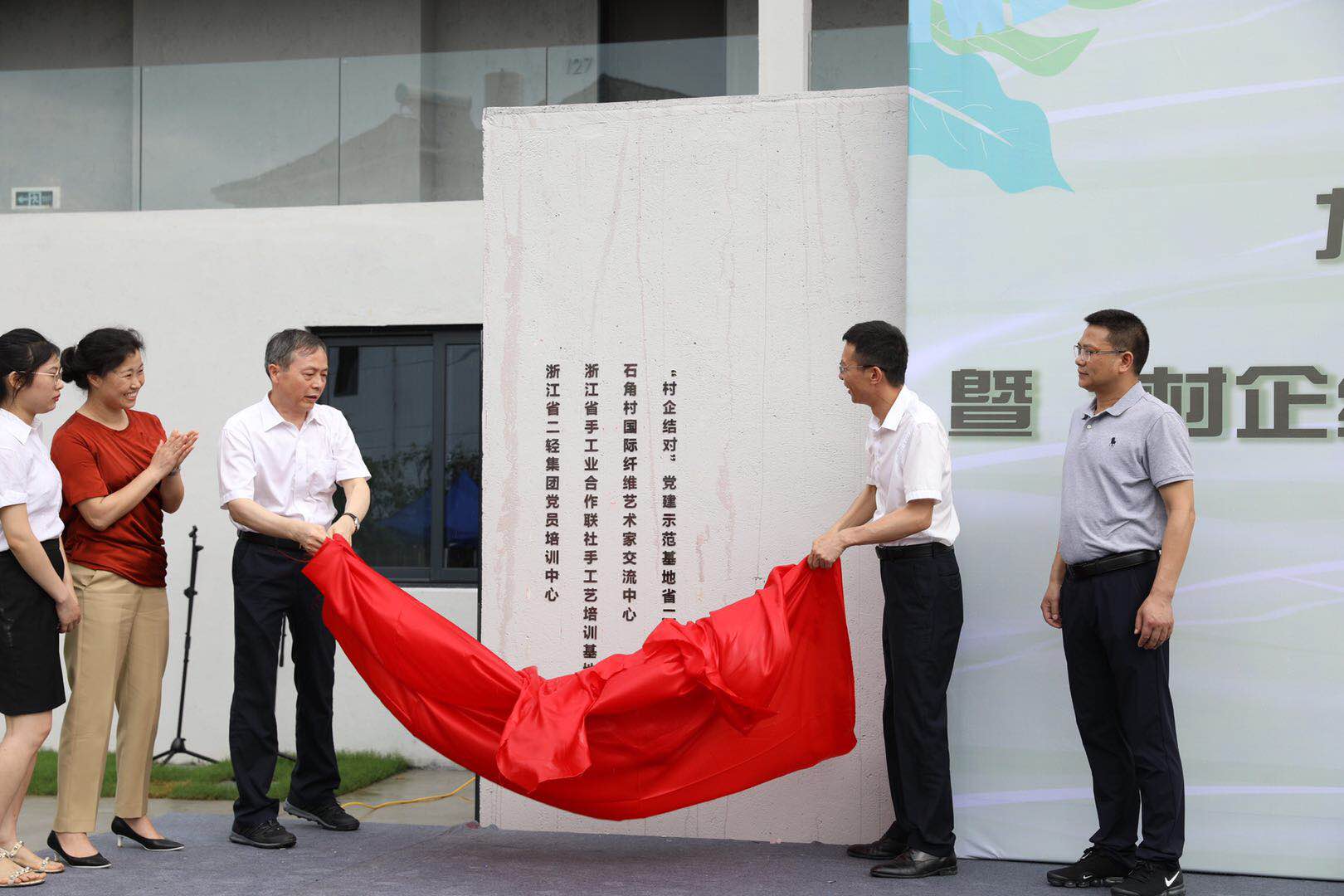 啟動儀式上,相關(guān)領(lǐng)導(dǎo)為龍南黨建聯(lián)盟授牌,并分別為省二輕集團黨員培訓(xùn)中心、浙江省手工業(yè)合作聯(lián)社手工藝培訓(xùn)基地、石角村國際纖維藝術(shù)家交流中心、“村企結(jié)對”黨建示范基地以及消薄項目聽澗·靈山江民宿揭牌。